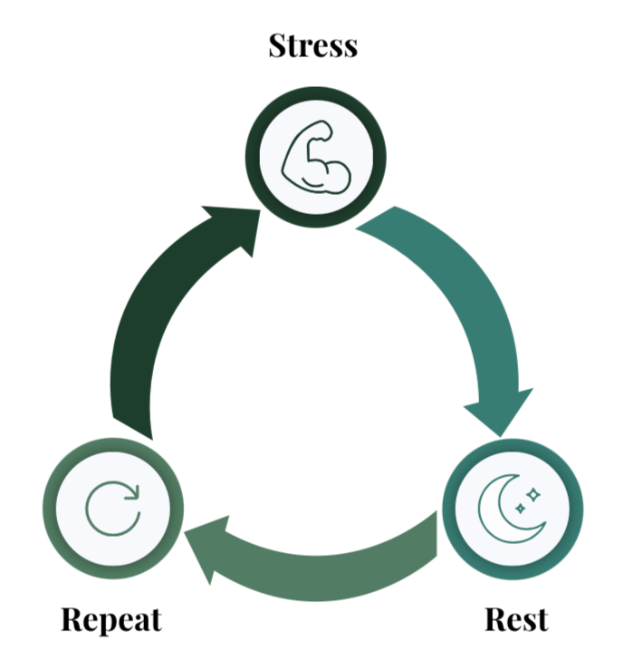 Fitness is not built through constant intensity. It is built through a cycle: stress, rest, repeat.